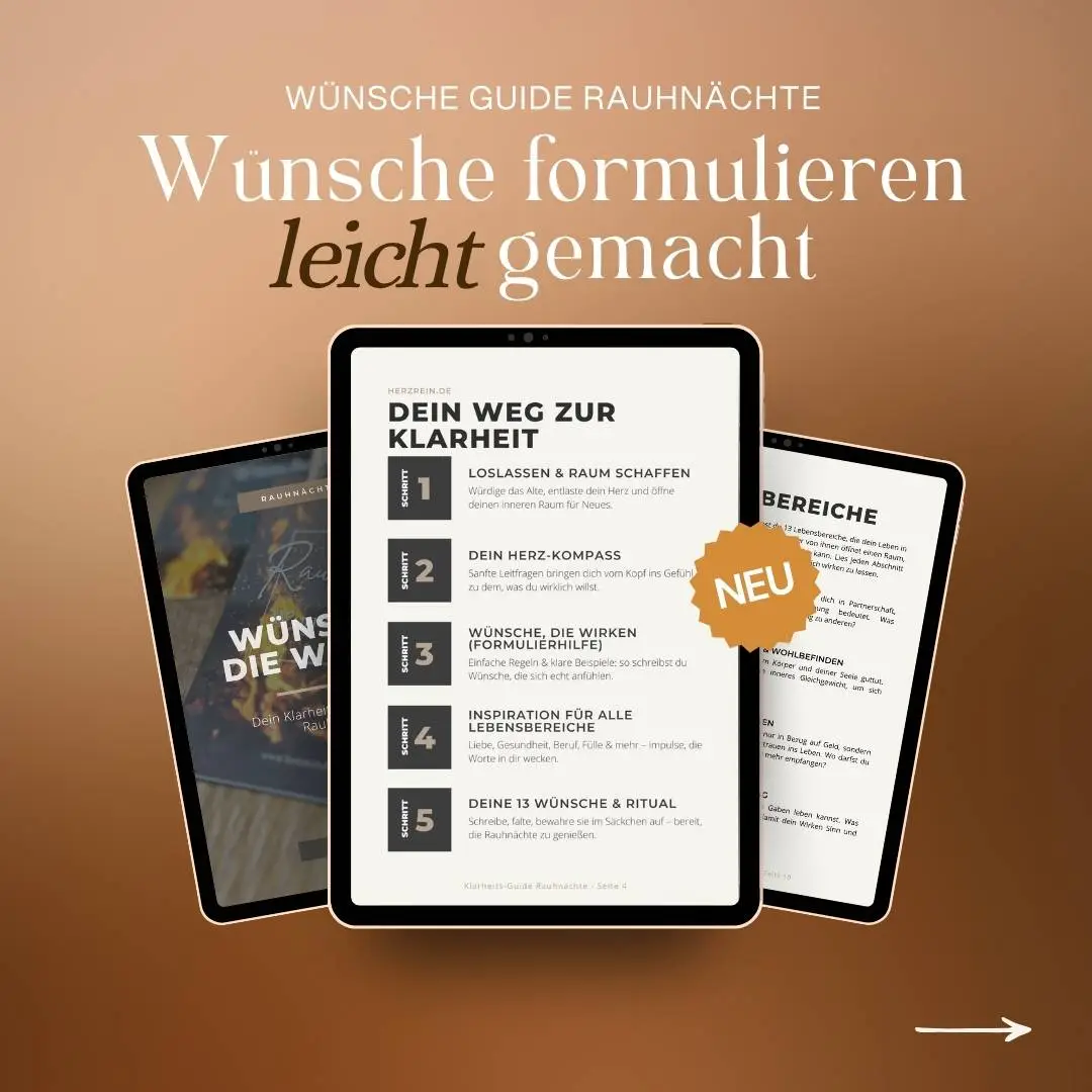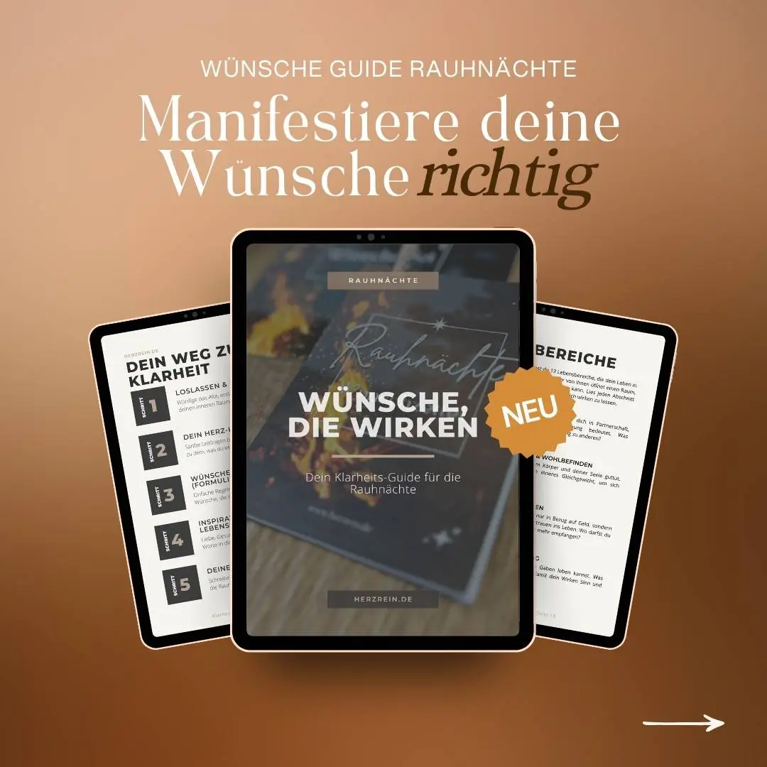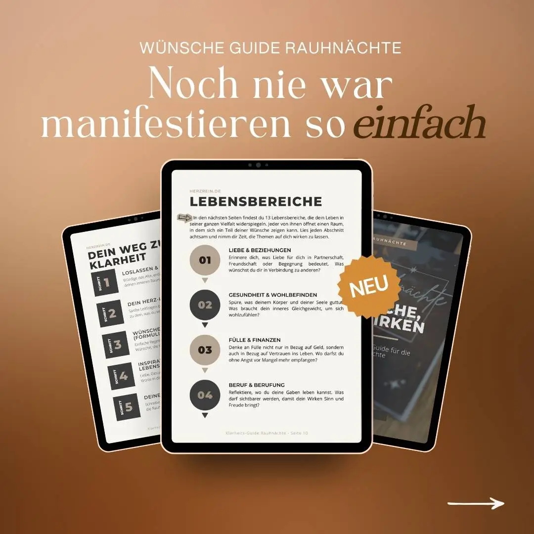 Der Wünsche-Guide Rauhnächte unterstützt dich dabei, dein Ritual bewusst, leicht und tief zugleich zu gestalten.